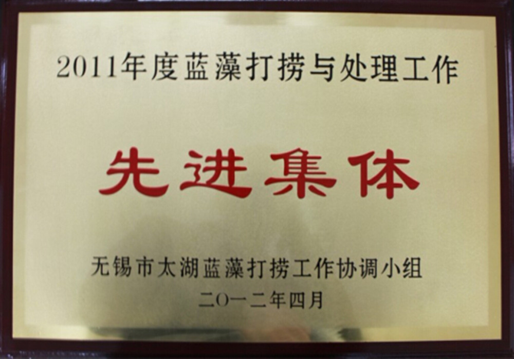 2012年4月9日上午,全市太湖藍藻打撈處理和湖泛巡查及應急處置工作會議在無錫市水利局召開。會議由周浩清副秘書長主持,副市長陳金虎下發了責任書,水利局王鴻涌局長、副局長張海泉分別對2012年的各項藍藻處理工作進行了部署及安排,并表揚了2011年先進個人及集體,我公司榮獲“先進集體”榮譽稱號。