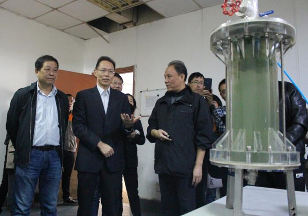 2019年11月22日,江蘇省水利廳副廳長鄭在洲率江蘇省藍藻總結會成員考察了我司的新裝置:多功能監測控藻船及加壓破壁裝置。