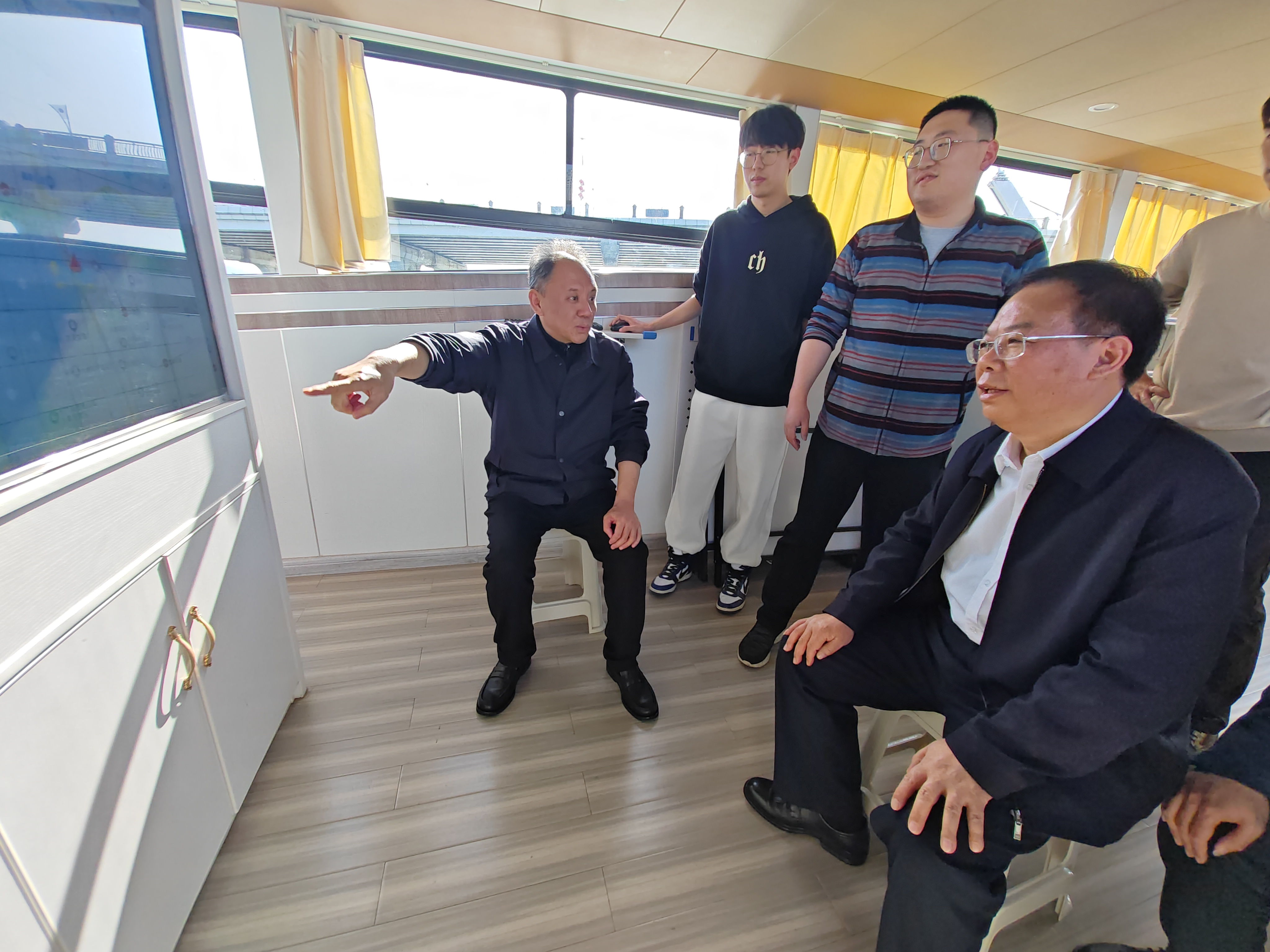 胡明明、徐項哲帶領客人參觀了工作站和監測預警船,詳細地介紹并現場演示了工作站搭載的網格化監測預警系統、SYQ水下底泥探測、藻類AI分析儀等先進工藝和設備,并展示了《蠡湖健康調查報告》《蠡湖健康評價報告》等工作成果。