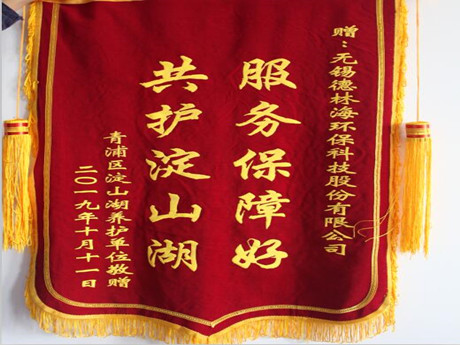 2019年夏天,我司應(yīng)上海市青浦區(qū)淀山湖養(yǎng)護(hù)單位的邀請,組織人員前往上海淀山湖藍(lán)藻進(jìn)行藍(lán)藻應(yīng)急治理工作,現(xiàn)工作順利完成,淀山湖養(yǎng)護(hù)單位特送來錦旗。