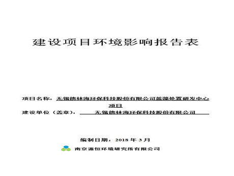 項目名稱:無錫德林海環(huán)保科技股份有限公司藍藻處置研發(fā)中心項目 建設單位:無錫德林海環(huán)保科技股份有限公司 公示時間:2019.3.27~2019.4.3