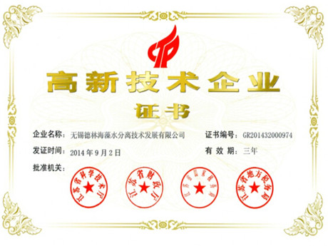 德林海公司成為首家獲得高新技術企業認定的治藻公司