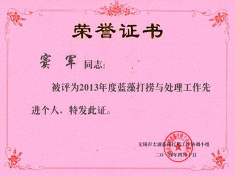 2015年4月21日上午,無錫市太湖藍藻打撈工作協調小組舉行頒獎儀式,表彰在2013年在太湖藍藻打撈、處理工作中的先進集體與個人。